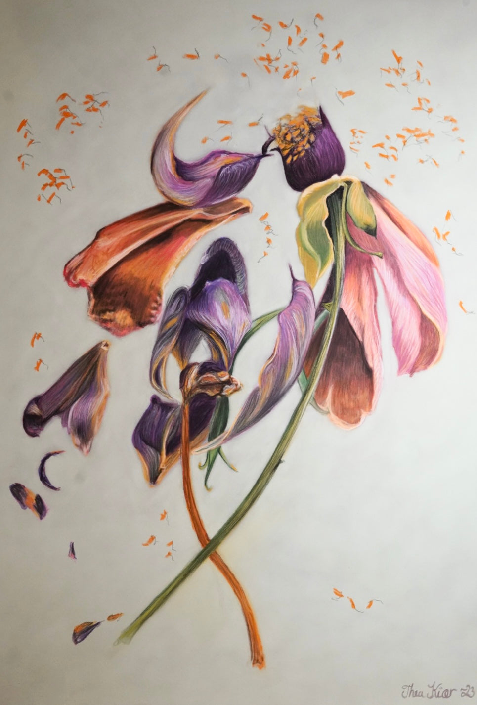Thea tegner også flotte tegninger med forskjellige tegneteknikker som tørrpastell, samt at hun også tar portrettbestillinger.