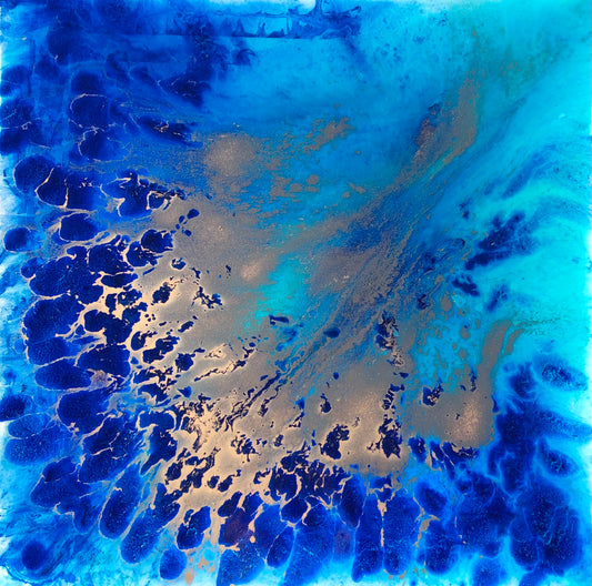 Original paintings in epoxy resin and alcohol ink by visual artist Thea Kiær.